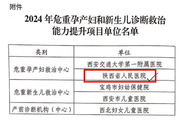 省级危重孕产妇救治中心喜获陕西省危重孕产妇诊断救治能力提升项目,项目资金600万元,建设周期3年。