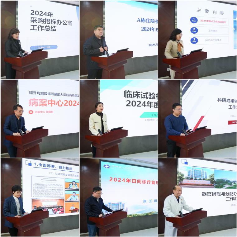 会上,45名职能处室负责人及支部书记围绕医院发展总体战略,立足岗位结合实际,全面汇报 2024 年党建工作、重点工作完成情况,分享管理创新与改革实践中的“新经验、新做法、新成效”。各处室紧扣医院2025年发展战略,“明思路、定目标、绘蓝图”,筹谋2025年工作路径,充分展示了行政管理干部奋发的工作状态和扎实的工作作风。