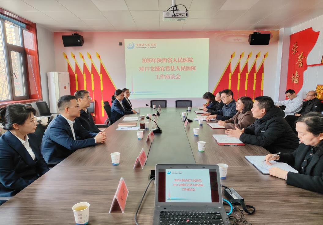 2025年度对口帮扶宜君县人民医院工作。宜君县卫健局党委书记田晓斌、县人民医院院长张云锋等参会。