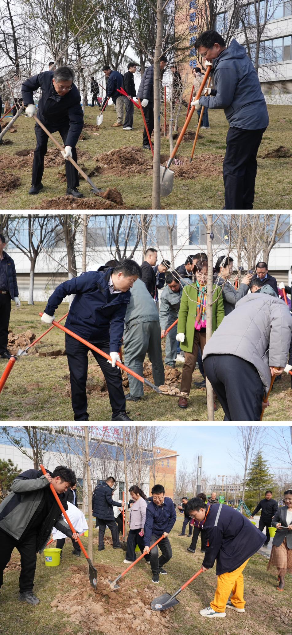 3月18日上午,院党委副书记张路、副院长张恩科、副院长段降龙和西咸院区院长助理任柯带领80余名干部和职工代表前往西咸院区开展植树活动。