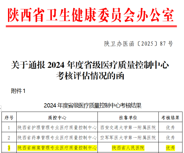 近日,陕西省卫生健康委公布了2024年度省级医疗质量控制中心考核结果,三级片