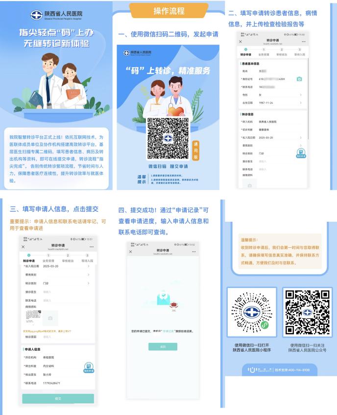 操作中,只需医联体单位转诊医生通过手机扫描专属转诊二维码,填写患者信息,上传病历资料及转出机构信息,即可在线提交转诊申请。基层医疗服务部24小时绿色通道服务电话将同步收到转诊提示,即刻进行审核,并迅速安排接诊科室和医生,同时为患者或陪同家属发送就诊温馨提示信息,指引他们按照详细的短信提示通过绿色通道直接到相应科室办理入院,实现了转诊指尖轻点“码”上办,让患者从踏入医院的那一刻起,就能感受到“入院有引导、离院有相送”的暖心体验。这一便捷新举措将传统电话联系的“长途跋涉”转变为“一键直达”,提升了转诊效率和就医体验,为保障患者健康按下加速键。
