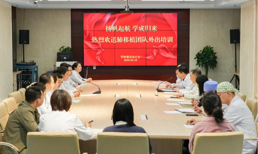 肺移植医疗技术团队。按照院领导要求及医院部署安排,肺移植团队即将赴国家肺移植培训基地——无锡市人民医院进行为期1年的专业进修及资质认证。4月9日,医院为学习团队举行欢送仪式,王建华副院长、相关职能处室负责人及肺移植团队医护人员参加会议。
