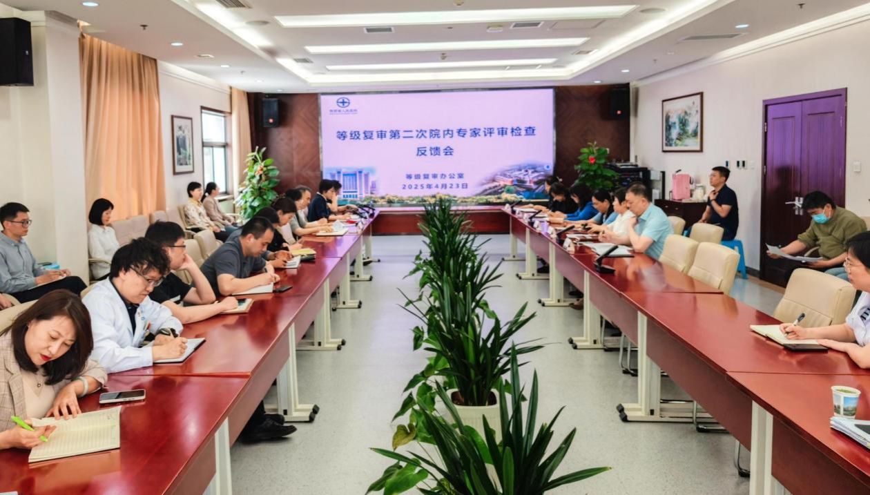 2025年4月23日,医院召开等级复审第二次院内自查反馈会,全面检验首次自查整改成效,系统梳理现存问题,吹响三甲复审冲锋号角。王建华副院长、院内评审专家团队、行政职能部门负责人及联络员共70余人参会,会议由复审办主任李晓晴主持。
