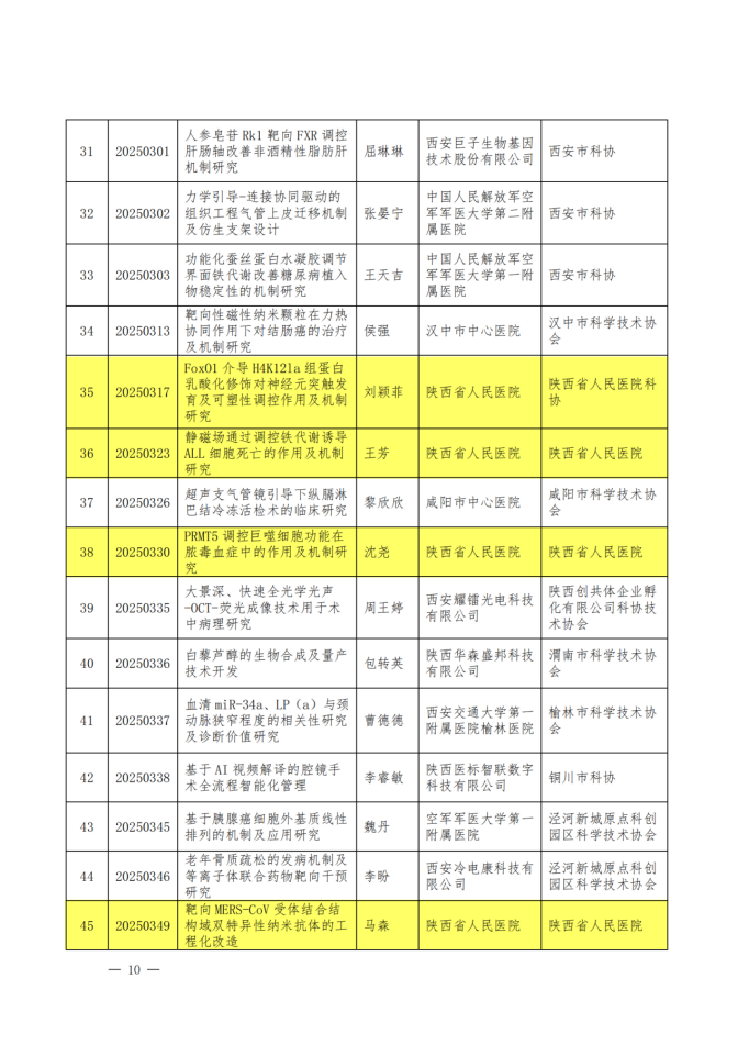 近日,陕西省科学技术协会公布了2025年度青年人才托举计划立项项目,三级片 血液内科刘颖菲、肿瘤内科王芳、放免中心沈尧、科研成果转化管理部马森4人的项目成功入选。