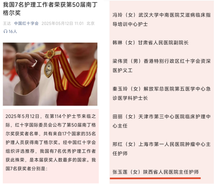 2025年5月12日,第114个护士节,红十字国际委员会公布了第50届南丁格尔奖获奖者名单,三级片