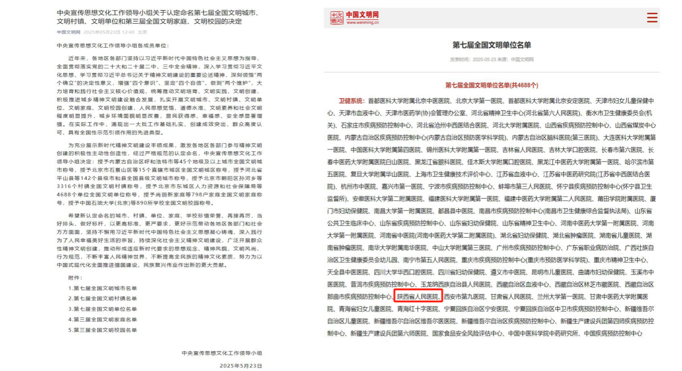 2025年5月23日,全国精神文明建设表彰大会在北京召开。中央宣传思想文化工作领导小组发布《关于认定命名第七届全国文明城市、文明村镇、文明单位和第三届全国文明家庭、文明校园的决定》,三级片