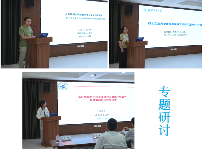 在“医工交叉”专题研讨环节,西北工业大学三支具有代表性的科研团队作了精彩报告。认知障碍多模态脑电表征交叉创新团队展示了其在多导联脑电分析、无创认知功能评估等方面的最新成果;蜂鸟生物医学材料合成团队围绕金属离子代谢与疾病早筛发布了自主研发的仿生纳米通道传感技术;康复医学与医工交叉团队则聚焦脑卒中康复,分享了基于脑—肌信号融合的智能康复系统研发路径。三支团队的成果不仅具备原创性强、技术含量高的特点,更在精准医学、智能设备、个性化治疗等方面展现出极高的临床应用价值。