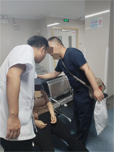 3 日 15 时 40 分,“一站式服务中心” 许倩护师、栗文静护士巡视中发现 CT 室门口一患者晕倒,初步判断为严重低血糖,分诊人员为其服下水果糖缓解症状,待患者稍稳后,与家属一同搀扶至急诊科进一步观察治疗。