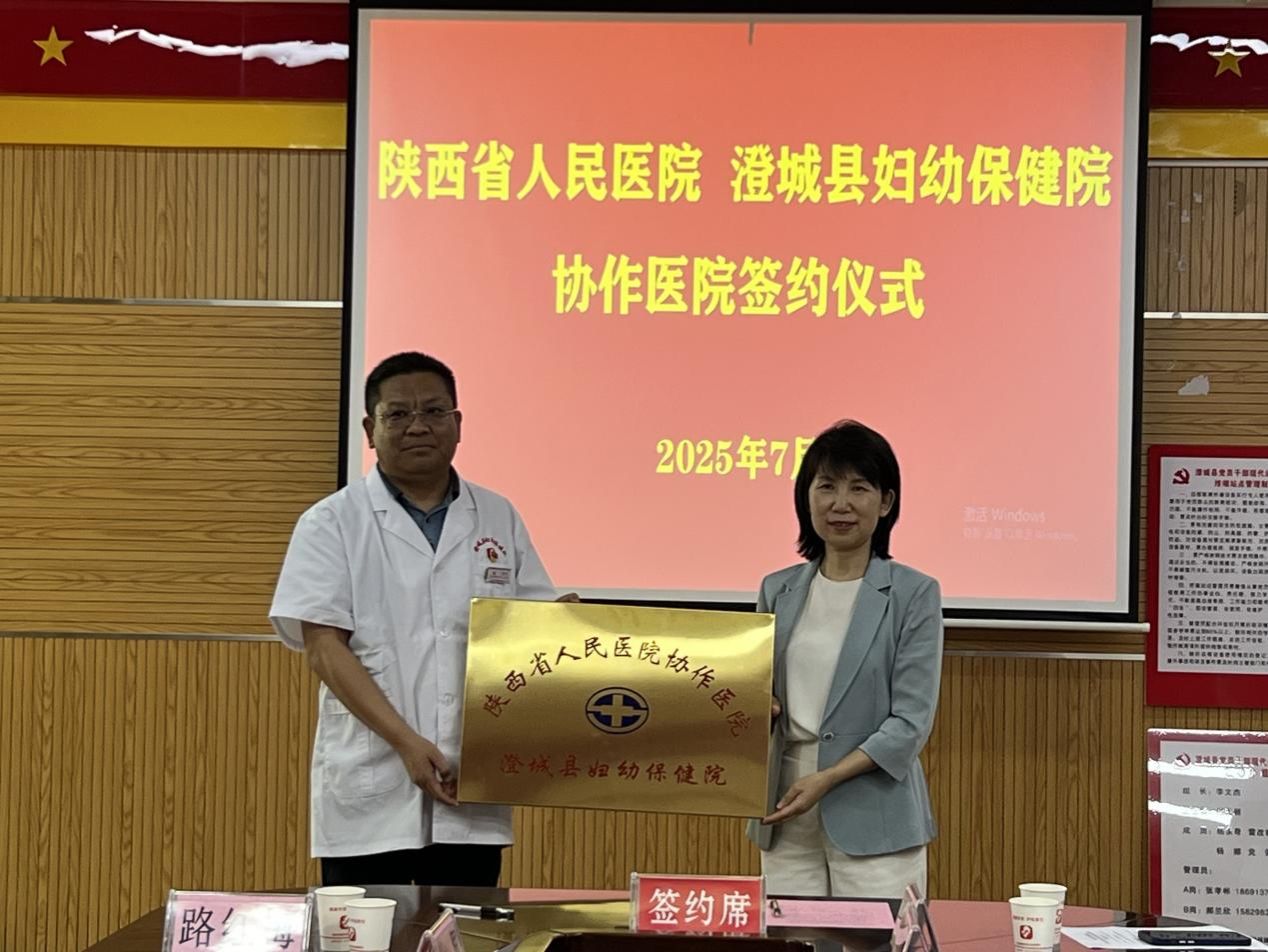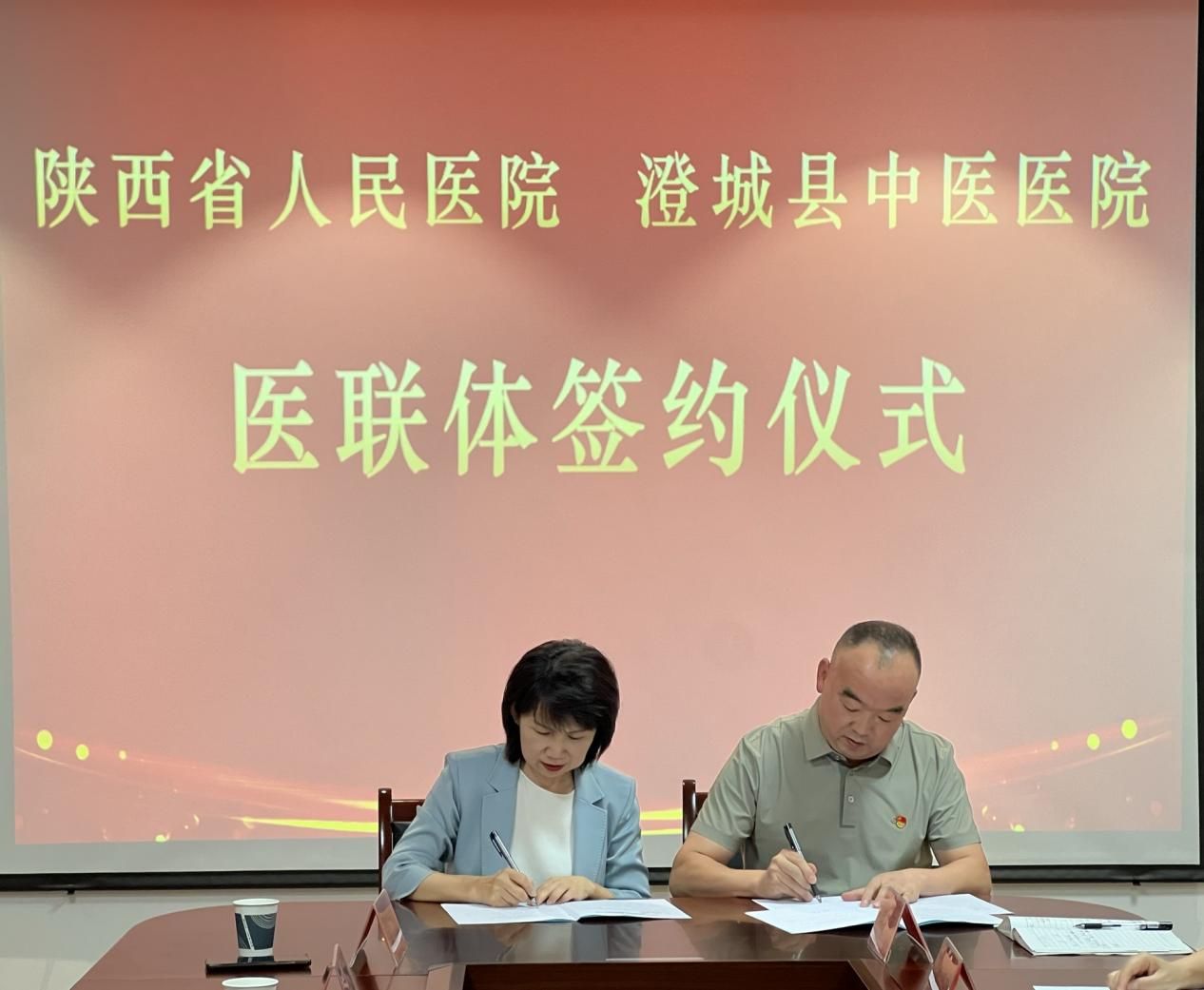 与当地卫健局、各医院领导班子及相关职能科室负责人,围绕党建引领和党业融合发展、合作模式创新和共同提升等话题进行了深入交流探讨,并与澄城县中医医院签署新一轮合作协议,与澄城县妇幼保健院进行协作医院签约并授牌。