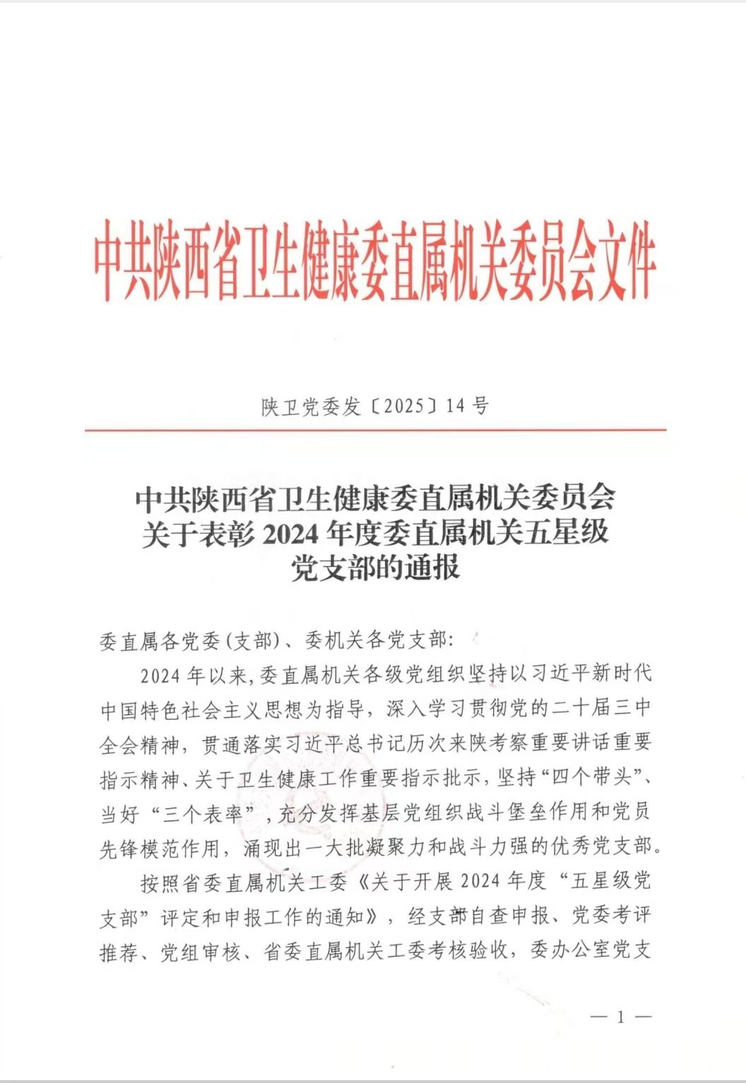 创建星级党支部工作再创佳绩。近日,中共陕西省卫健委直属机关委员会下发《关于表彰2024年度委直属机关五星级党支部的通报》,三级片