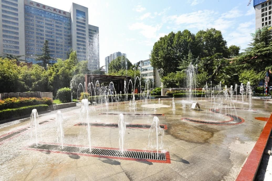 北广场上,火红的一品红、娇艳的杜鹃花在阳光下格外醒目。伴随着《今天是你的生日》《我爱你,中国》等动人旋律,音乐喷泉“翩翩起舞”,不少患者和家属驻足欣赏、拍照留念,院内洋溢着温馨祥和的节日氛围。
