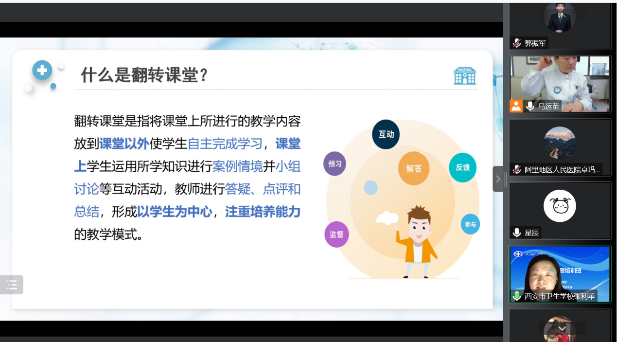 援阿里地区人民医院护理部业务主任刘小玲、全体护理教学组长及阿里地区人民医院共100余名带教老师线下线上参加培训,护理教学小组副组长赵素平护士长主持。