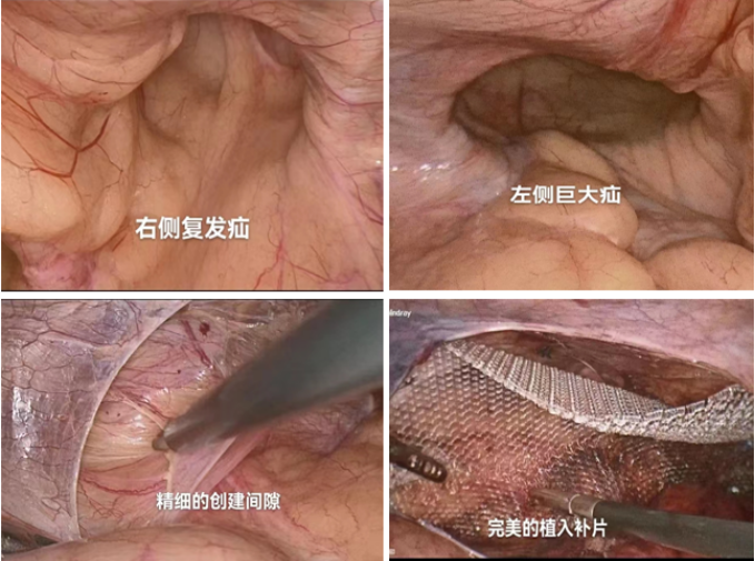 阎立昆主任带领团队,优化流程,精心安排。通过预住院完成术前检查。住院当天下午,在完成一例超低位直肠癌根治手术后,为该患者实施腹腔镜腹股沟疝无张力修补手术。术中发现不仅左侧有一巨大缺损,右侧的疝也复发了,于是实施双侧疝修补手术。虽然手术难度大,但凭借多年的临床经验和在腹股沟区解剖方面的深入研究,创建出精确的解剖间隙,完美植入修补网片,一个多小时便顺利完成这项复杂的手术。第二天一大早,患者已可以自如下床活动,高高兴兴地出院回家了。患者表示,这次手术给他带来了非常完美的治疗体验,一扫上次手术带来的心里阴影,万分感谢普外一科的精心治疗。