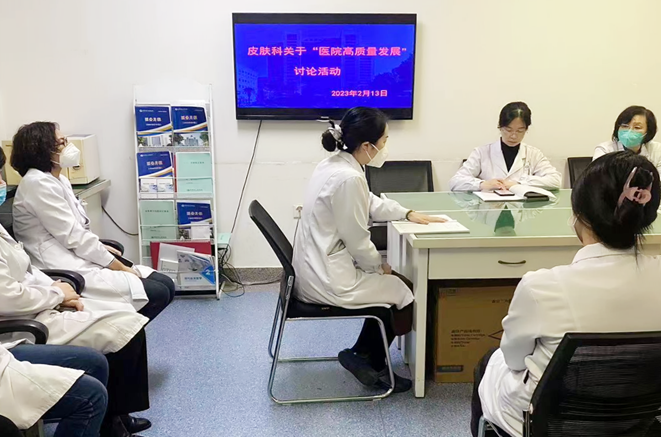 为贯彻落实医院高质量发展大会会议精神,促进皮肤科各项工作高质量发展,2月13日,在科室副主任杨励带领下,结合科室人才队伍、学科建设等实际情况,皮肤科在全科范围内开展学习讨论活动,就科室高质量发展进行大讨论。