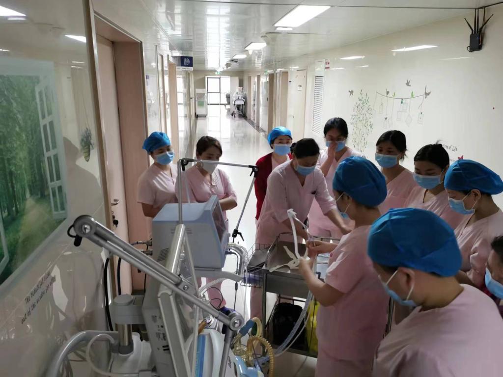 科室护士长示范了管路连接及上机过程中的护理注意事项。针对新生儿危重抢救设备除颤仪,工程师从仪器的整个流程操作及注意事项方面进行了详细讲解,大家学习热情高涨,积极提问并进行实操练习。