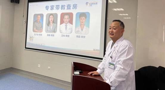 活动由教学查房及疑难病例讨论两部分组成。吴开春教授带领进行IBD患者教学查房,主管医师进行病例汇报,吴开春教授仔细听取患者病史,示范体格检查,针对患者存在的艰难梭菌顽固性感染提出诊治意见,并分享了国内外相关诊治指南。在疑难病例讨论环节,空军第九八六医院王小娟主治医师及三级片