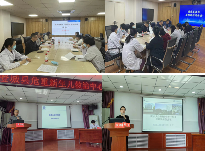 新生儿科主任雷宏涛,培训基地秘书、新生儿科赵智主任医师、赵璞主治医师前往基地培训学员单位所在地—澄城县妇幼保健院进行交流培训。澄城县全县妇幼专干、新生儿科、产科医生共同讨论、分享和交流。
