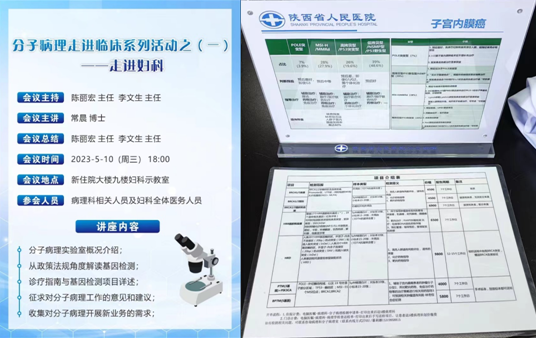 5月10日下午,病理科李文生主任带领分子病理实验室一行四人走进妇科,开启了分子病理走进临床系列活动的第一站。妇科全体医务人员参会,陈丽宏主任和李文生主任主持。