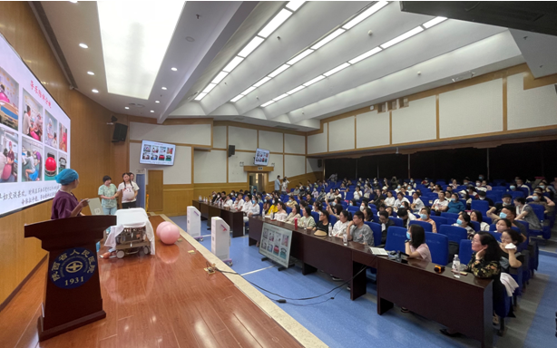 吴桂清主任致开场词:“孩子的一声啼哭,让你成为坚不可摧的母亲,用一生温暖了他的岁岁年年。”十月怀胎,辛苦又充满幸福,我们要感恩母亲,关爱孕妈妈。随后,产科医护团队演绎情景剧《产房故事》,引发全场孕妈妈对导乐陪伴分娩的极大兴趣和热情。产房王淑娥护士长做了题为《导乐陪伴分娩》的专题讲座,详细讲解了导乐的方法、作用及三级片