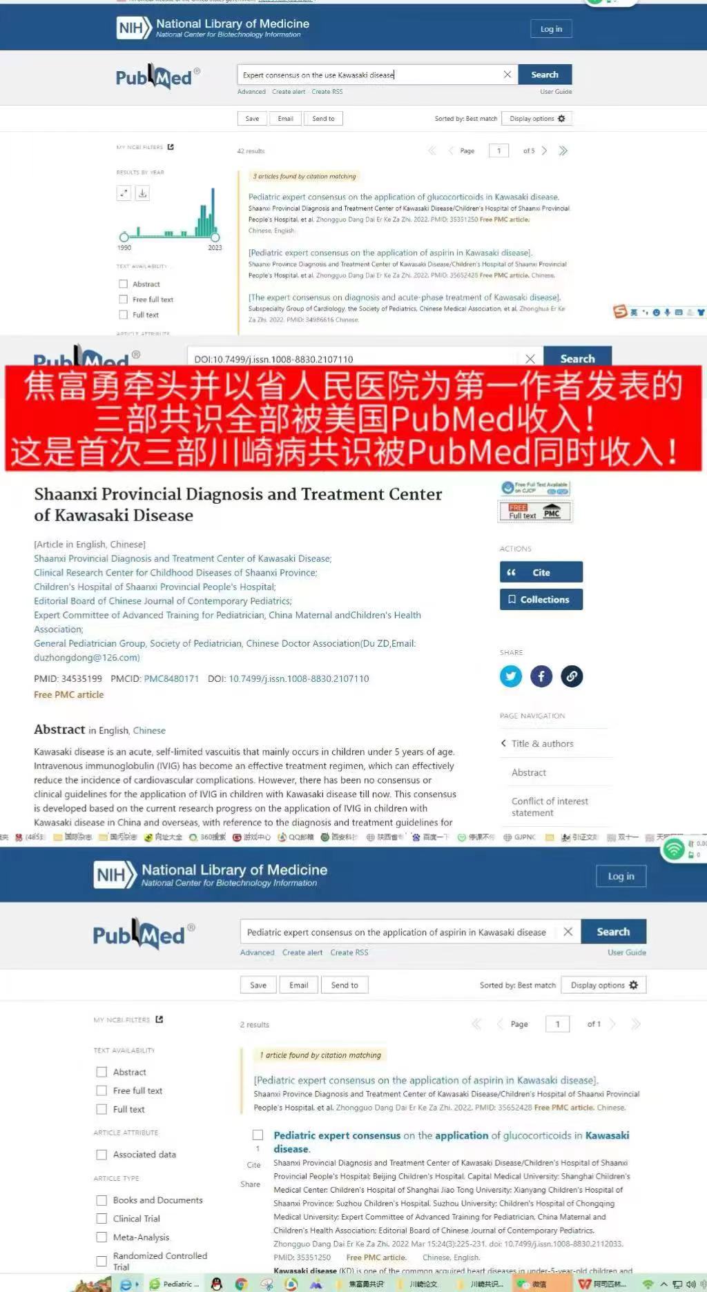 此外,焦富勇教授牵头并以省人民医院为第一作者发表的三部共识全部被美国PubMed收入,这也是首次三部川崎病共识被美国PubMed同时收入,为川崎病诊疗事业作出了重要贡献。
