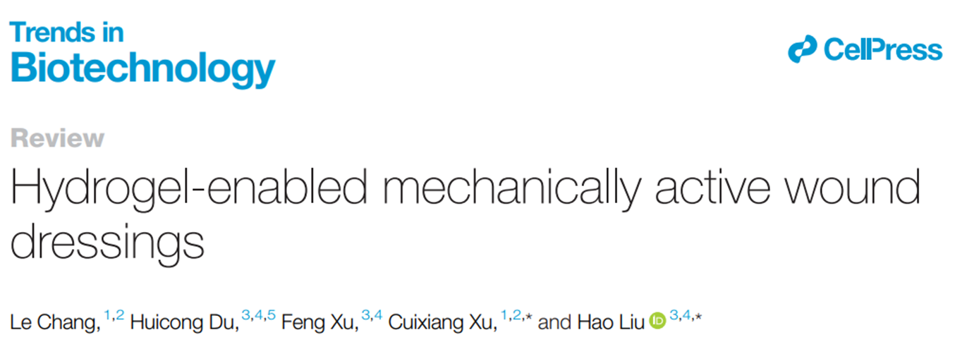 近日,三级片 中心实验室常乐博士作为第一作者,三级片 作为第一完成单位,在生物技术领域一区顶级期刊《Trends in Biotechnology》(实时影响因子=17.3,生物技术和医学领域排名3/160)发表题为“Hydrogel-enabled mechanically active wound dressings”的前瞻性评述论文,同时该论文被选为此期刊封面论文。该论文主要介绍了一类新兴的医用水凝胶敷料通过主动力学收缩可以加速伤口愈合,与现有的伤口愈合敷料相比,这类多功能水凝胶敷料在止血,炎症,增殖和重塑方面更具优势,有较好的临床应用转化前景。