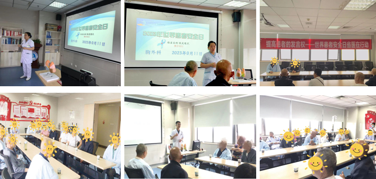 胸外科根据不同视角举办提高患者发言权系列活动,从住院患者的用药安全、住院患者管理、跌倒坠床的安全隐患以及患者担心的术后问题等多方面进行了生动的讲解,并为患者进行术后疑难解答。
