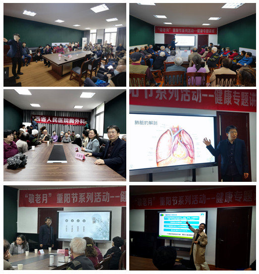 活动现场,豆亚伟副主任用通俗易懂的语言进行了肺结节知识生动的讲授以及肺大疱相关知识的科普;袁金艳护士长热情耐心地解答大家的健康咨询;丁永玲主管护师进行糖尿病相关知识科普。医护人员科普健康知识,进行免费问诊,根据居民疾病特点提出针对性诊疗意见及自我管理建议,得到陕西学前师范学院退休老教师们的高度评价。