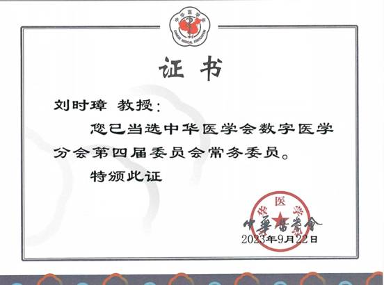 骨科刘时璋教授当选中华医学会数字医学分会第四届委员会常务委员。