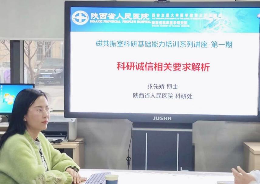 为了提升磁共振室医技护人员的科研意识和能力,促进学科高质量发展,磁共振室雷晓燕主任和高洁副主任经过周密筹划和安排,制定了科室科研基础培训和能力提升系列课程。1月18日下午培训如期举行,邀请了科研处张先娇博士作题为《科研诚信相关要求解析》讲座,高洁副主任主持,磁共振室所有医技护成员、进修生、规培生参加。