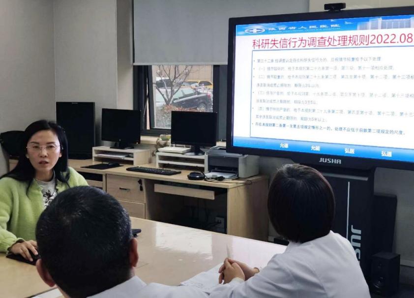 张先娇博士首先介绍了科研诚信的核心内涵,详细解析了科研人员在科研活动应当遵守的原则和规范,着重强调了科研成果署名、知情同意、科研伦理审核、科研数据保管和留存等事项的重要性。其次,系统梳理了国家近年来针对科研诚信问题制定的相关政策和法规文件,结合国家和医院层面对学术不端行为的查处原则和办法,警示大家学术不端行为不仅限制了个人未来发展前景,也会使科室和医院名誉受损,科研活动中一定要遵守学术规范,勿触红线。讲座结束后,张先娇博士与科室成员积极互动,就大家在科研实施过程中遇到的相关问题进行了深入探讨。张先娇博士表示,她将会与科研处全体同事一起,一如既往地为所有科研人员提供系统、专业的指导和帮助,切实解决大家科研过程中的各项困难。