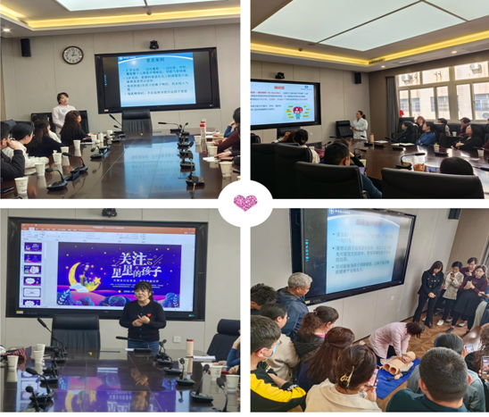 “世界自闭症日”来临之际,为了让更多人了解、关爱“来自星星的孩子”,在儿童病院张晓燕副主任安排下,病院党支部书记张西嫔积极对接西电幼儿园。在幼儿园的大力支持和配合下,3月28日下午,“创辉”党员突击队队长郑千千带领党员王洁英、吕丹走进了幼儿园,为老师及家长宣讲《儿童自闭症》及《儿童意外伤害》的健康科普知识,旨在提高家长及老师们的急救意识和对自闭症儿童早期识别的能力。会议由幼儿园雷萍老师主持,现场普及人群约80人。