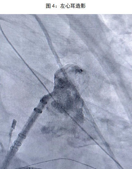 术前对患者进行充分评估,在进行完善的术前检查和全面的术前准备后,手术顺利启动。手术分为两个部分:首先是房颤射频消融,术中使用pentaray导管在Carto3三维系统下,重构建左心房三维解剖图(FAM)同时采集左心房电压基质,在构建右下肺静脉时转为房颤心律,再使用消融导管对左房右肺静脉顶部和侧壁以及左肺静脉嵴部和后壁部位进行逐点消融,左侧和右侧肺静脉均实现单圈隔离,整个射频消融时间控制在90min内。射频消融完成后,朱舜明副主任立即开始左心耳封堵手术。通过在同一个房间隔穿刺位点交换左心耳封堵鞘,造影显示心耳形态呈反鸡翅型,测量左心耳开口为17mm,可用深度为16mm,结合术前三维重建模型及术中心腔内超声(ICE)结果,选择20mmWATCHMAN FLX左心耳封堵器。送入WATCHMAN FLX输送系统,并在ICE及DSA辅助下进行精准定位,ICE多角度查看封堵器位置形态良好,封堵伞展开无漏肩,无残余分流,压缩比16%,牵拉试验稳定,牵拉后无明显位移,符合释放标准PASS原则。随后释放封堵伞,最终成功完美封堵左心耳。
