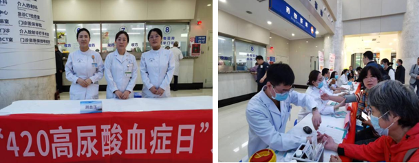 4月20日是“全民关注痛风日”,今年的主题是“精准防控,畅享生活”。为提高群众对痛风的重视程度,做到未发病先预防,早发现早治疗,让更多的群众通过科学的健康管理,远离痛风带来的伤害,风湿免疫科医护人员开展系列活动。
