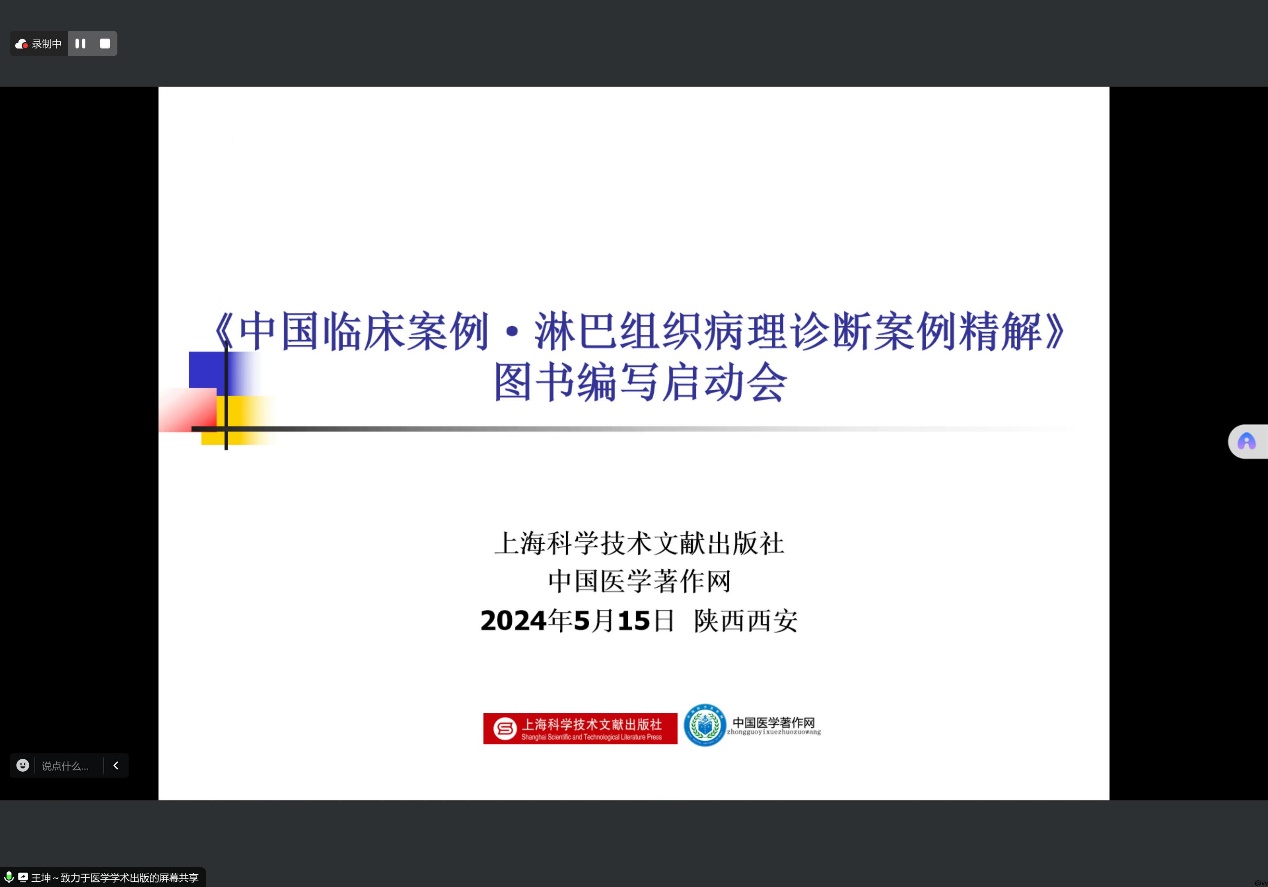 病理科李文生主任担任第一主编的《中国临床案例·淋巴组织病理诊断案例精解》图书编写启动会于线上成功召开。本册书由中国医学著作网策划,将由上海科技文献出版社出版发行。李文生主任受邀作为第一主编,山西省肿瘤医院病理科主任、山西省医学会病理分会主任委员郗彦凤教授,中国医学科学院血液病医院特聘病理专家翟琼莉教授作为主编以及全国近30位知名淋巴瘤病理专家作为编委参加会议。中国医学著作网崔志军主任、张兰霞策划编辑及策划编辑部主任王坤编辑应邀参会。