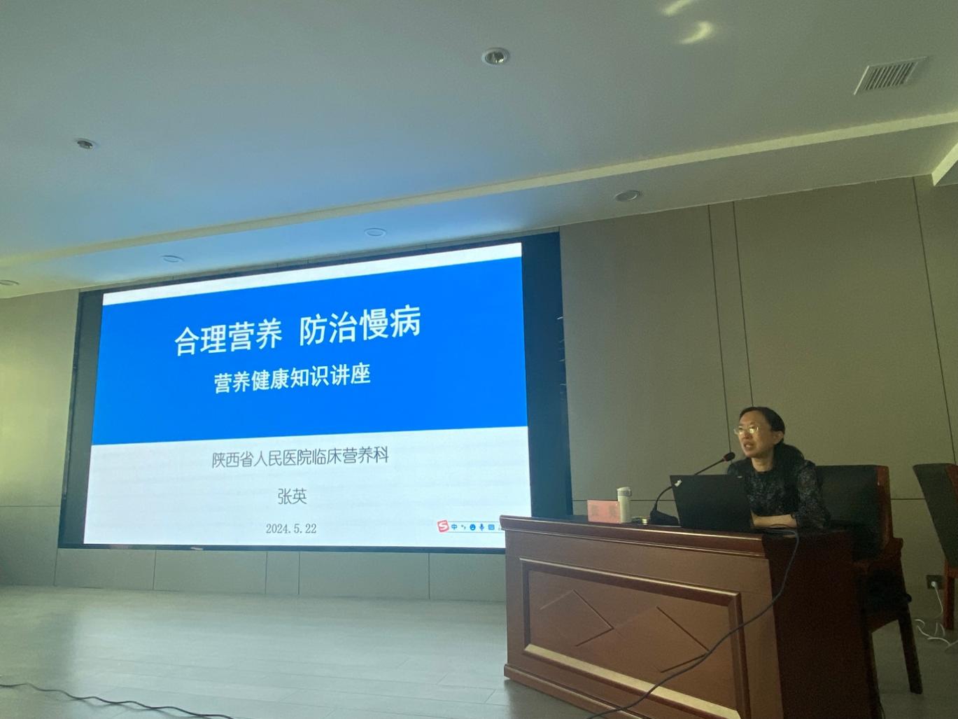 以及临床营养科的发展简史;随后以“合理营养,防治慢病”为题,结合实际工作中患者遇到的健康问题,用生动典型的案例及通俗易懂的语言,从营养基础知识,合理膳食结构到糖尿病、高血压、血脂异常、痛风、恶性肿瘤等常见慢性病的饮食防控要点等方面进行了详细介绍,指出生活中常见的饮食误区及可能给慢病防控造成的不良影响,重点强调了合理膳食对于慢病防控的重要作用,提倡大家要养成合理膳食、适量运动、戒烟限酒等健康生活方式。现场发放了控盐勺及《成人高血压食养指南》、《糖尿病食养指南》、2024全民营养周《减油、增豆、加奶核心信息》等健康知识宣传折页。