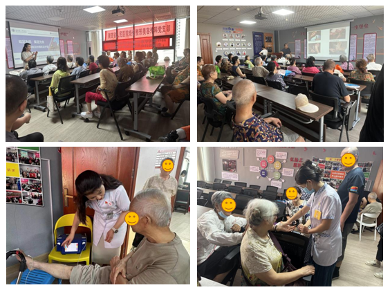 活动以老年居民多、慢性病患者多为切入点,围绕糖尿病与外伤相关知识,由党员突击队糖尿病足创面治疗组组长王国栋医生、伤口专科护士马小妮副护士长和高煜晖主管护师为社区居民展开科普。马小妮副护士长以《知“足”为乐,保“足”为先》为主题,图文并茂地从“洗、查、控、糖”四方面,生动具体讲解了糖尿病足的日常预防及护理。王国栋医生着眼于糖尿病的相关科普,深入浅出地对糖尿病的定义、病因、临床表现、并发症及健康指导五个方面展开指导,还特别强调了合理饮食、适度运动、定期体检的重要性。