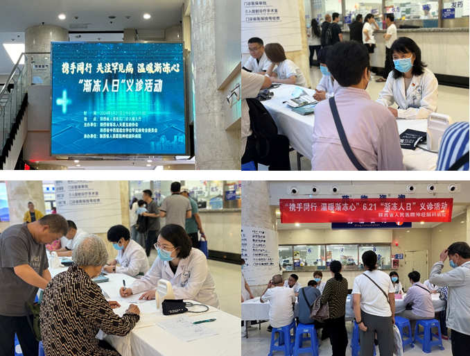 2024年6月21日是第25个“世界渐冻人日”。在陕西省渐冻人关爱互助会和陕西省中西医结合学会罕见病专业委员会的倡导下,在陕西省国际医学交流促进会神经内科专业委员会的支持下,三级片 神经内科作为“渐冻人”协会副会长单位、中西医结合学会罕见病专委会及医促会神内专委会副主委单位积极响应号召,21日上午,神经内一科牵头,联合神经内二三科在医院门诊大厅举行“携手同行,温暖渐冻心”义诊活动。