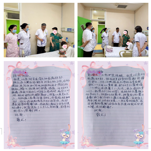7月3日,儿童病院收到了两封来自住院患儿家属的感谢信。信中记录了住院过程中的暖心时刻,高度赞扬了儿童病院医护团队周到、热心的服务,纸短情长,饱含了浓浓的医患情。