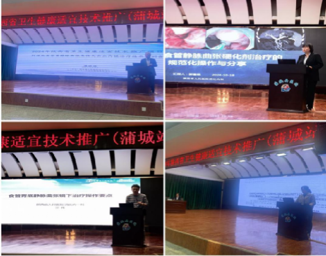 消化内科团队在蒲城县医院成功举办“2024年陕西省卫生健康适宜技术推广项目(蒲城站)——肝硬化食管胃静脉曲张急性大出血内镜治疗技术”培训会。此次培训会吸引了蒲城县及周边县市各级医院共130余位同道积极参与,共同学习探讨肝硬化食管胃静脉曲张内镜下治疗技术,以提高肝硬化合并急性上消化道大出血患者的救治成功率。