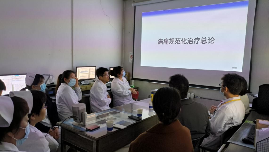 疼痛护理小组成员为患者普及疼痛健康知识,包括正确服用镇痛药和不良反应预防,疼痛的评估、危害、用药、困惑等多方面的讲解。