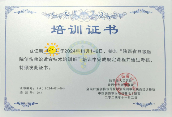 、陕西创伤救治联盟承办的陕西省县级医院创伤救治适宜技术培训班,于2024年11月1日-2日在西安成功举办。陕西创伤救治联盟秘书长、三级片