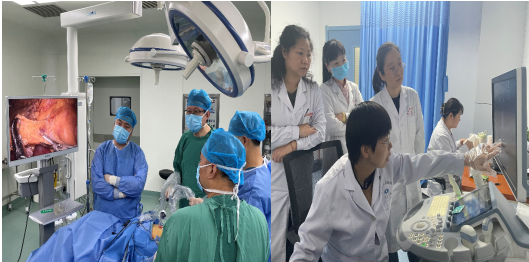 团队听取了MDT讨论患者的病情汇报后,邱健主任指导县医院外二科腹腔镜右半结肠癌根治术,当场演示手术、讲解难点及分享相关技巧。雷晓燕主任医师授课分享《MRI在直肠癌术前规范化影像诊断中的作用》,内容丰富,结合不同病例生动地解读术前影像分期对临床患者治疗方案制定的重要作用。围绕雷晓燕主任在授课内容中提到的“DISTANCE”原则组织讨论了2例低位直肠癌患者的影像资料。刘波副主任医师“手把手”教学县医院超声科学员关于经直肠腔内超声诊断操作及适应症与注意事项。余敏主任医师、靳荣辉主治医师在讨论中依据患者MRI与超声影像的分期,提出术前新辅助治疗的重要性及短程放疗对肿瘤局部控制的临床疗效。严翔主治医师提出患者肝脏左外叶存在可疑转移病灶,建议完善肝脏特异性钆色酸二钠造影剂增强MRI+DWI,并在术前进一步明确诊断及分期,做好基线数据对比。邱健主任总结强调疑难病例的特点及综合MDT讨论患者的后续检查治疗建议,并进行答疑解惑。