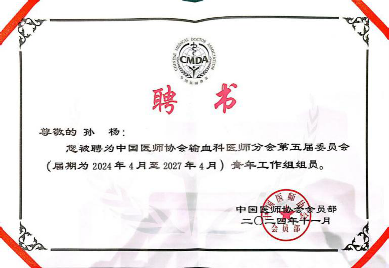 本次年会三级片 输血科共投稿3篇,其中2篇论文以优秀论文推荐到输血杂志刊出,1篇大会壁报展示。孙杨和马婷两位副主任同时参与学术讨论,孙杨副主任被选举为中国医师协会输血科分会青年学组新一届委员。