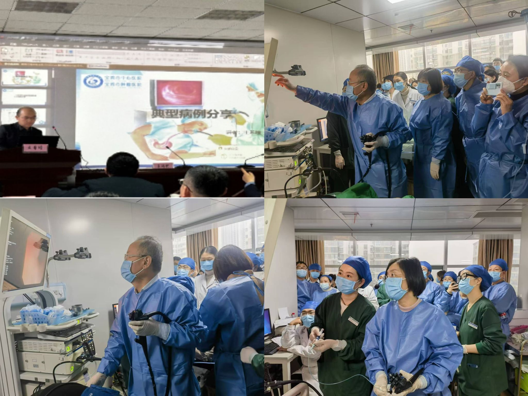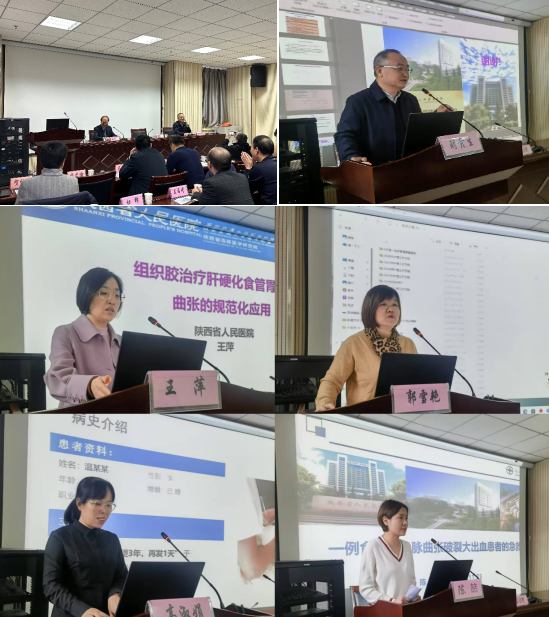 消化内一科刘贵生主任、王萍及郭雪艳副主任、高淑娟副主任医师、陈喆护士长以及宝鸡市中心医院王希曈主治医师就肝硬化食管胃静脉曲张的急诊内镜治疗策略、组织胶治疗肝硬化食管胃静脉曲张的规范应用、肝硬化食管胃静脉曲张硬化剂治疗的规范化操作与分享、肝硬化食管胃静脉曲张急性出血内镜治疗典型病例分享、医护一体化在一例食管胃静脉曲张破裂大出血患者中的急救管理、近期典型病例分享等内容进行了深入讲解和交流。刘贵生主任、王萍及郭雪艳副主任对7例肝硬化食管胃静脉曲张破裂出血的患者进行内镜治疗操作演示及教学。专家们的讲解深入浅出,案例分析详实生动,操作演示精准到位,让参会人员对肝硬化食管胃静脉曲张内镜下治疗技术有了更全面、更深入的了解。