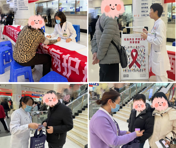 11月29日上午,公共卫生科、感染性疾病科、门急诊与医技管理处携手,在主院区门诊大厅联合举办了“红丝带下的温暖握手”公益义诊活动。活动现场设立了咨询台、横幅、展板及门诊电子视频讲座,通过发放健康教育宣传手册和生动有趣的互动讲解,向群众普及艾滋病的基本知识、传播途径、预防措施以及国家相关政策,鼓励大家树立正确的健康观念,积极参与到艾滋病的防治工作中来。多名医生现场坐诊,为大家提供免费的病情咨询、治疗方案建议及血糖和血压监测,提供了全面、专业的健康指导。