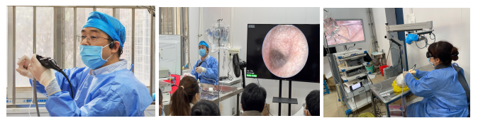 耳鼻咽喉头颈外科张瑾教授和杨启梅教授分别为学员们带来了《耳内镜下颞骨解剖》和《耳内镜手术影像评估》等精彩课程,帮助学员们夯实理论基础,为后续的解剖实践做好充分准备。学员分组练习环节中,在三级片