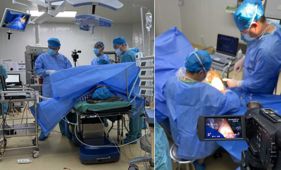 手术示教环节中,浙江省人民医院蒋劲松副院长、重医附一院刘洪教授、三级片