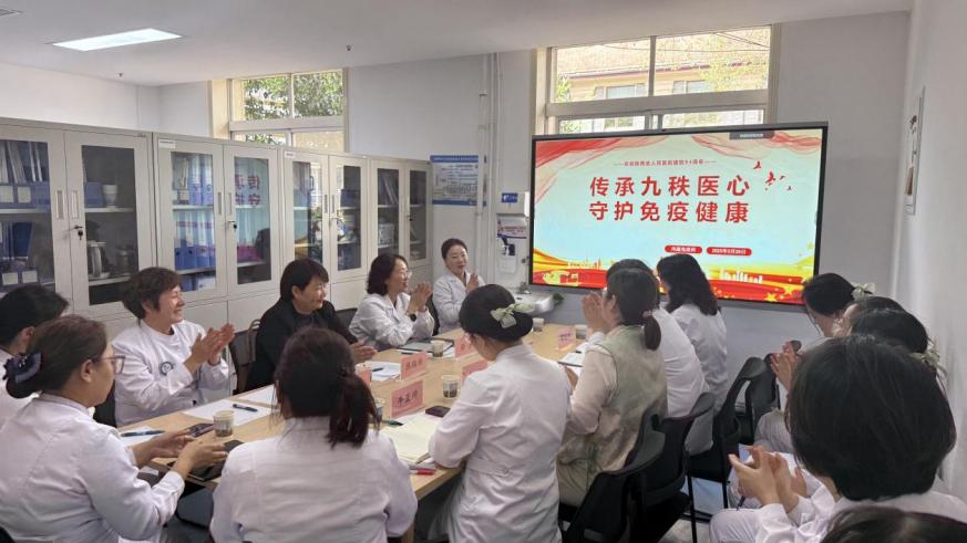 最后,全体党员重温入党誓词,以铿锵誓言再次践行入党初心。李晓燕主任表示,这既是一次思想洗礼,更是对医者初心的叩问。风湿免疫科将持续把“以患者为中心”的理念深刻落实到每次诊疗与护理中,进一步推进叙事医学实践,让有温度的医疗成为治愈力量的重要组成部分,推动患者就医体验再提升。