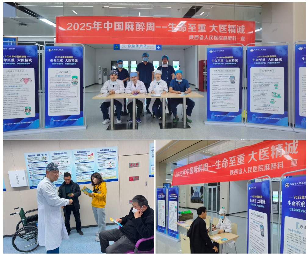 为使广大群众深入了解麻醉知识,在2025年“中国麻醉周”期间,麻醉科白宁主任组织权威专家团队,科室精心策划、积极行动,通过一系列形式多样、内容丰富的活动,在主院区和西咸院区同步举办义诊活动,全方位开展麻醉科普宣传。